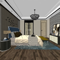 将图1的SU模型渲染成实景照片,清晨柔和自然光从室内窗户洒入,木质地板纹理清晰,墙面装饰细节真实,床上用品质感细腻,软装纹理自然,摄影级质感,8K分辨率,高细节,暖色调氛围 - Nano Banana Pro