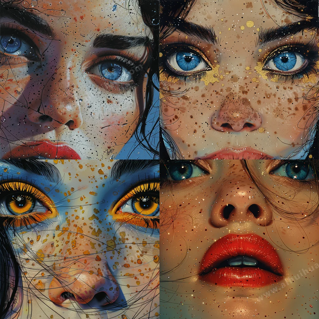AI Prompt the girl face in an artistic cartoon style, in the style of pop art-inspired comic book style, trompe-l'œil illusionistic detail, iconic rock and roll imagery, dark sky-blue and light bronze, pop art silkscreening, hyper-detailed illustrations, pointillist precision --s 750 --v 6.0 中文大意:卡通艺术风格的女孩脸,波普艺术风格的漫画风格,恶搞细节,标志性摇滚意象,深天蓝色和浅青铜色,波普艺术丝网印刷,超详细的插图,点画的精确 --s 750 --v 6.0 查看更多手绘/插画 |