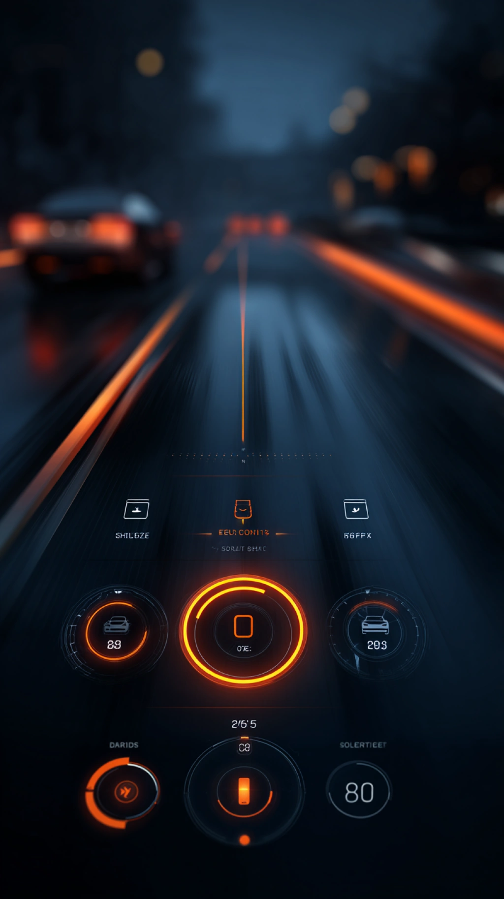 提示词(Prompt) 汽车驾驶辅助UI,实时路况与安全提示,深蓝与橙色对比,智能科技风格,提示图标高亮,屏幕有动态光效,界面安全可靠 --ar 9:16 |