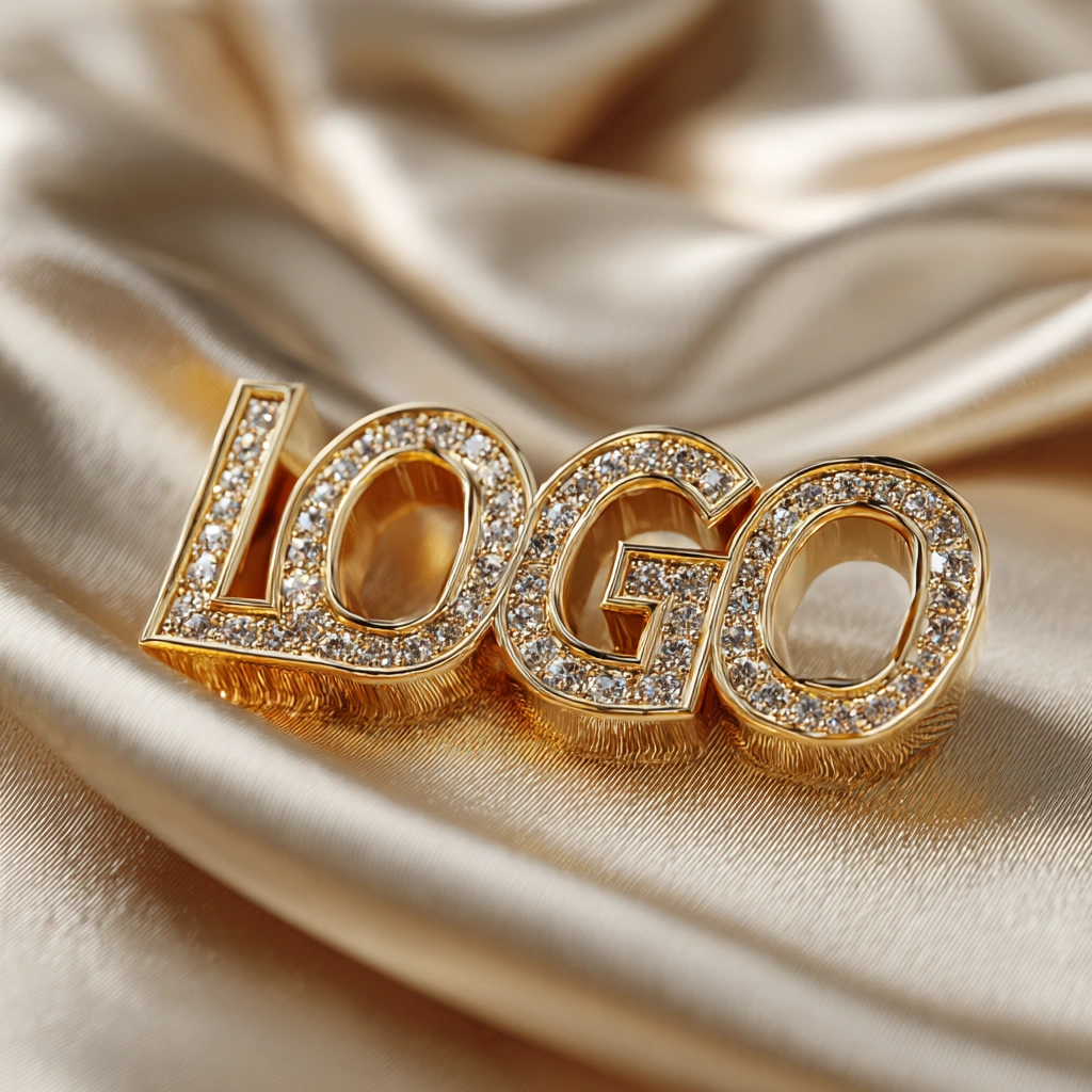 提示词(Prompt) 高端珠宝品牌LOGO,金色立体字母与钻石切面元素,奢华现代风格,LOGO边缘有细腻高光反射,整体闪耀精致 |