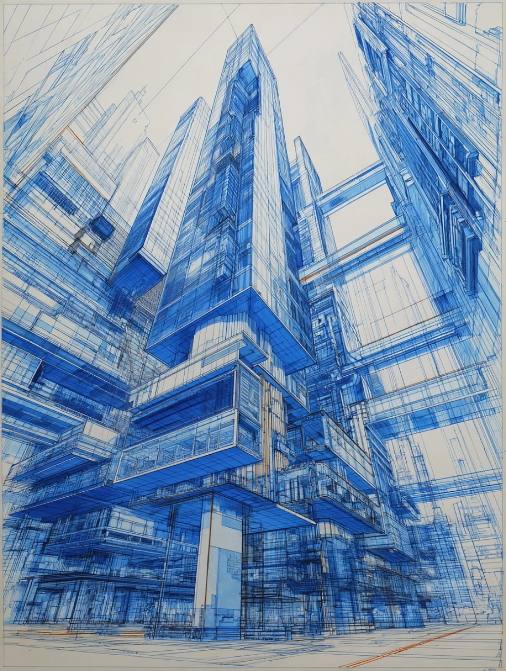 提示词(Prompt) 建筑设计图,未来科技风格,高耸摩天大楼,玻璃幕墙,蓝色荧光线条,悬浮平台,空中花园,现代感,创新结构,视觉震撼 --ar 3:4 |