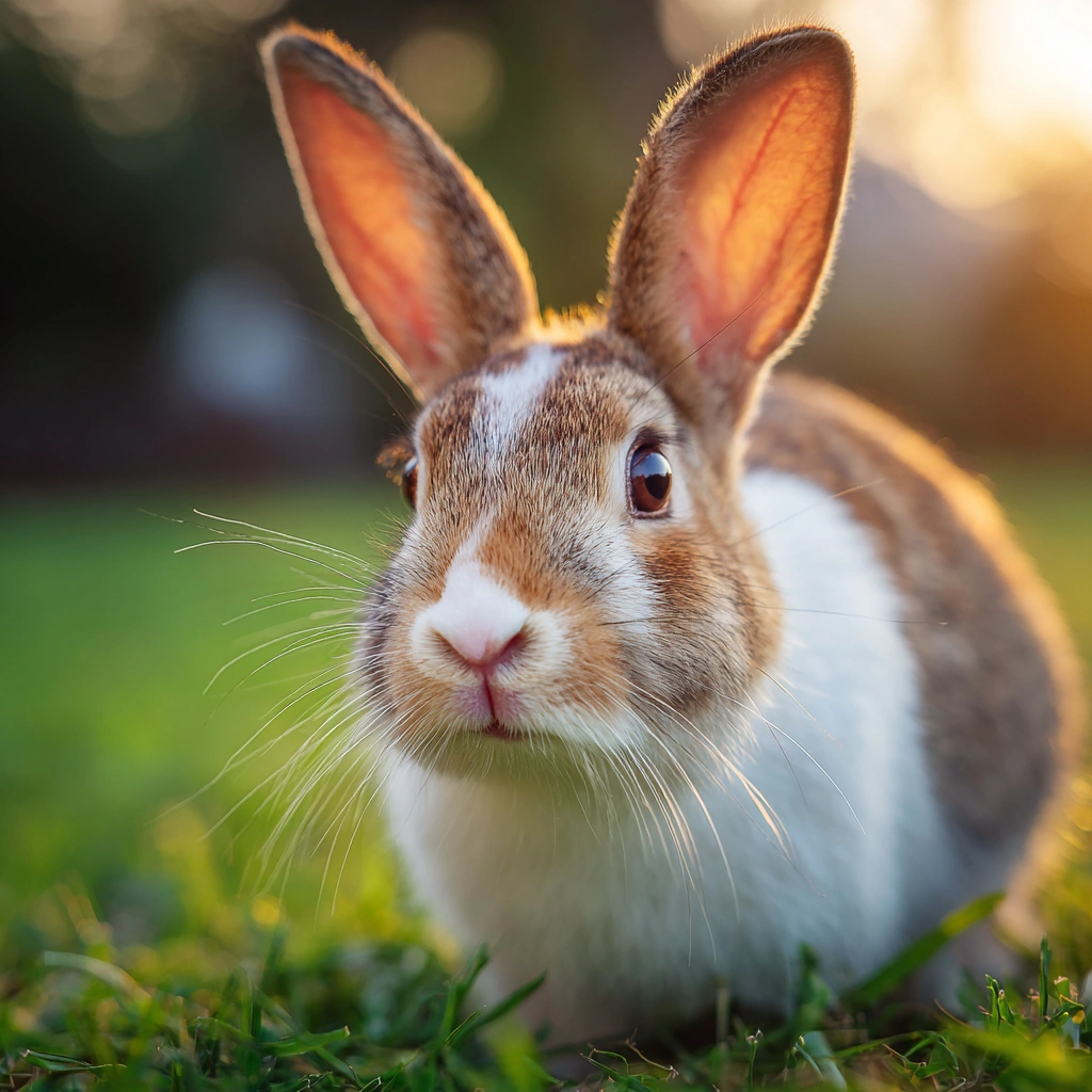 提示词(Prompt) 花园清晨,兔子静坐草丛特写,米白绒毛与粉色鼻尖,高清可爱动物摄影风格,胡须纤细,阳光洒落在草叶与兔毛上,画面温馨生动 |