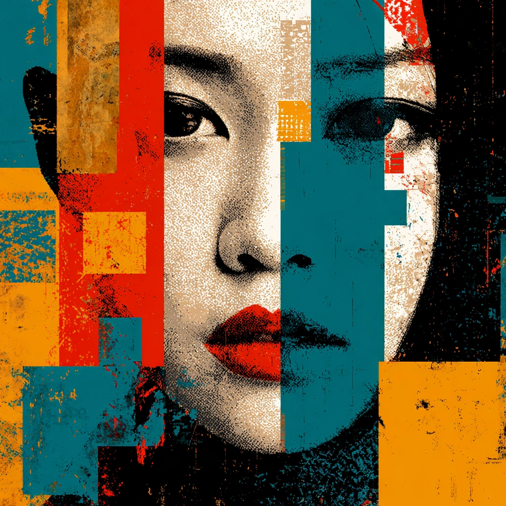 提示词(Prompt) 抽象风:年轻东方女性的面部被几何平面、色块与流体线条拆解重构,眼睛与唇部保留焦点,强对比配色,视觉张力 |