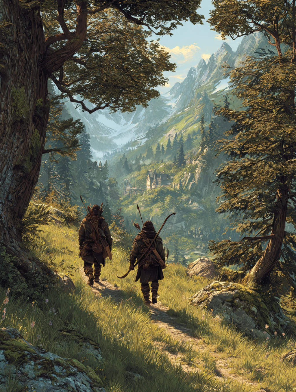 提示词(Prompt) 游戏荒野探险,猎人携弓箭巡视旷野,棕色与墨绿,写实冒险风格,服装有皮革纹理,夕阳下投射长影,画面苍茫壮丽 --ar 3:4 |