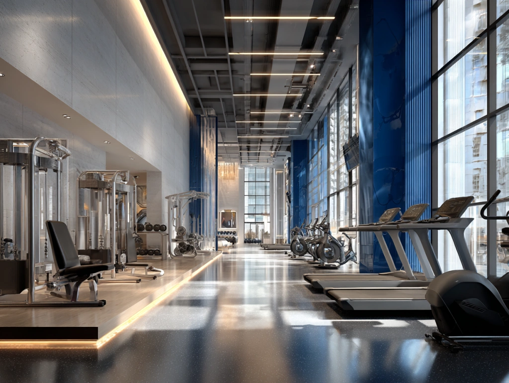 提示词(Prompt) 高端健身中心,玻璃幕墙和动感灯光,银白与深蓝色调,现代运动风格,专业健身设备和空间分区细致,明暗对比强烈,氛围活力,建筑设计效果图 --ar 4:3 |